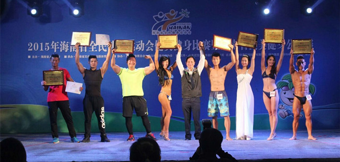 2015年12月5日至6日,由海南省人民政府主办、海南省文化广电出版体育厅承办的“2015年海南省全民健身运动会健美健身比赛暨海南省健美健身公开赛”, 在海口绿地中央城举行。共有来自海口、三亚、琼海等市、县以及本省高校的25支代表队284人,参加本次比赛4个大项21个级别的角逐,人数项目规模为历届之最。