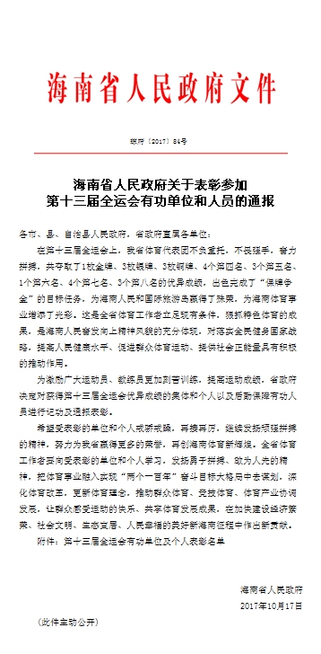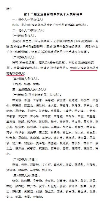 近日,海南省人民政府发布关于表彰参加第十三届全运会有功单位和人员的通报,决定对获得第十三届全运会优异成绩的集体和个人以及后勤保障有功人员进行记功及通报表彰。其中best365体育部黄丽莎老师作为群众体育项目羽毛球教练员获得个人表彰,记个人二等功。