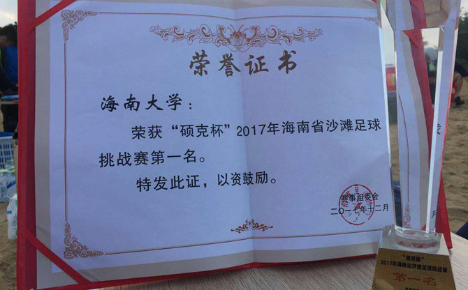 由海南省文体厅主办,海南省足协承办的“硕克杯”2017年海南省沙滩足球挑战赛,近日在海南省足协裕东青少年足球训练基地落下帷幕,best365中国官方网站男子足球队获得本次比赛冠军。