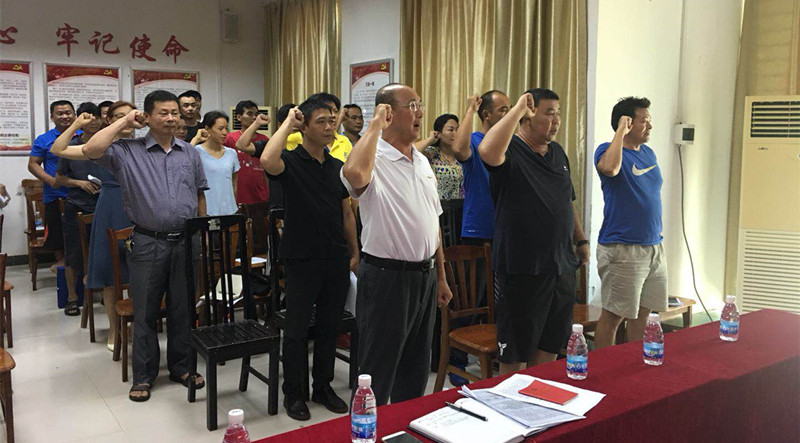 会议第一项由陈泰豪书记带领全体党员重温入党誓词。大家举起右拳,面向党旗,庄严进行了宣誓,又一次接受了洗礼。通过重温入党誓词,加强党员的革命传统教育,提高党员的党性修养,使党员牢记自己曾经宣誓的责任和义务,不忘初心,继续前进。