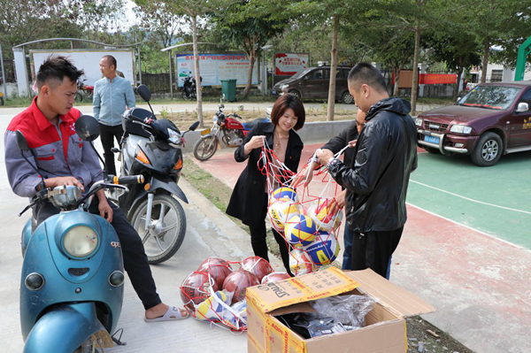 乐妹村民领取健身活动急需的体育器材