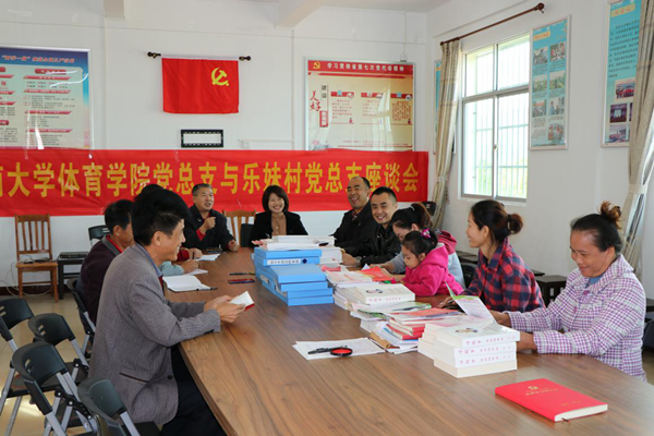 best365中国官方网站党总支书记何映敏等一行人员到乐妹村开展科学健身指导,并捐赠健身活动急需的体育器材。随后,针对村民健身活动开展情况,健康生活方式现状等内容,best365中国官方网站党总支与乐妹村党总支进行“全民健身 你我同行”为主题的座谈交流会。//www.hainanu.edu.cn