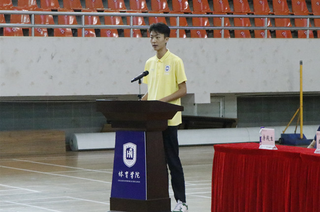19级学生代表吴嘉骐同学发言,她结合自身一年的大学生涯向新生们分享了几点感触:如何为体育学院的美好明天贡献一份力量如何学会自立自强、如何加强自我管理能力,如何更快的融入集体生活。最后,她向新同学传达了我们海大人自强不息的奋斗精神及海纳百川的胸怀和良好的道德修养。