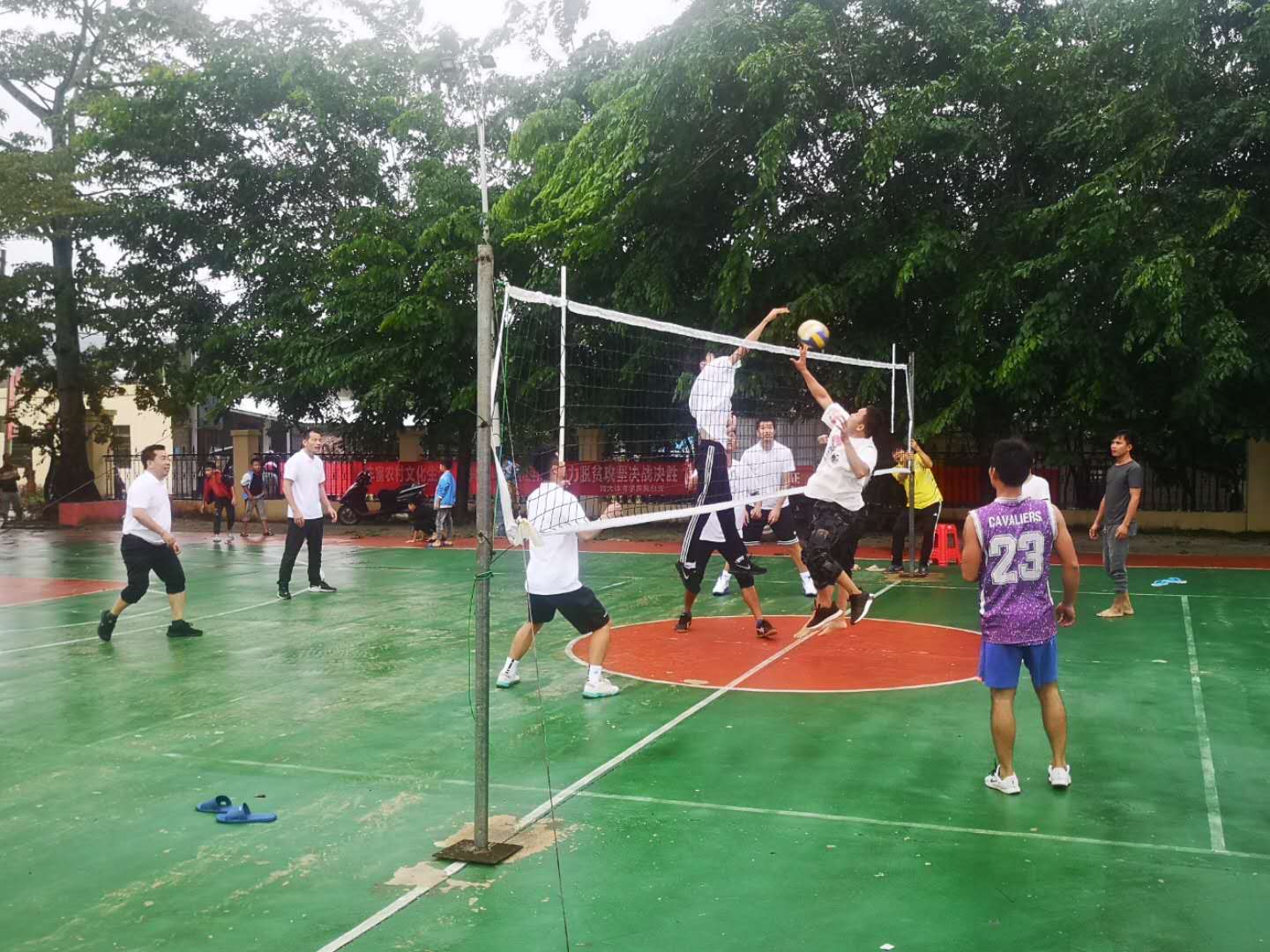 今年10月17日是我国第七个“国家扶贫日”,为了保持“不忘初心、牢记使命”主题教育常态化,加强党组织建设,提高基层党组织的凝聚力和战斗力,同时助力学校定点扶贫单位脱贫攻坚决战决胜,全院二十多名党员赴best365中国官方网站定点帮扶的东方市大田镇乐妹村开展“不忘初心、牢记使命”主题教育暨体育文化下乡慰问活动。本次活动,由best365中国官方网站党总支书记陈卫东、院长洪家云带队,由best365中国官方网站党员教师组成的排球队与乐妹村排球队进行了一场别开生面的排球比赛,以球会友,以赛促融,无论是场上的队员还是场下的观众都通过比赛加深了彼此的了解,增进了彼此的感情,同时,学院为乐妹村村民及学生们送去了体育器材设施和慰问礼品,以实际行动助力乐妹村脱贫攻坚战取得全面胜利。